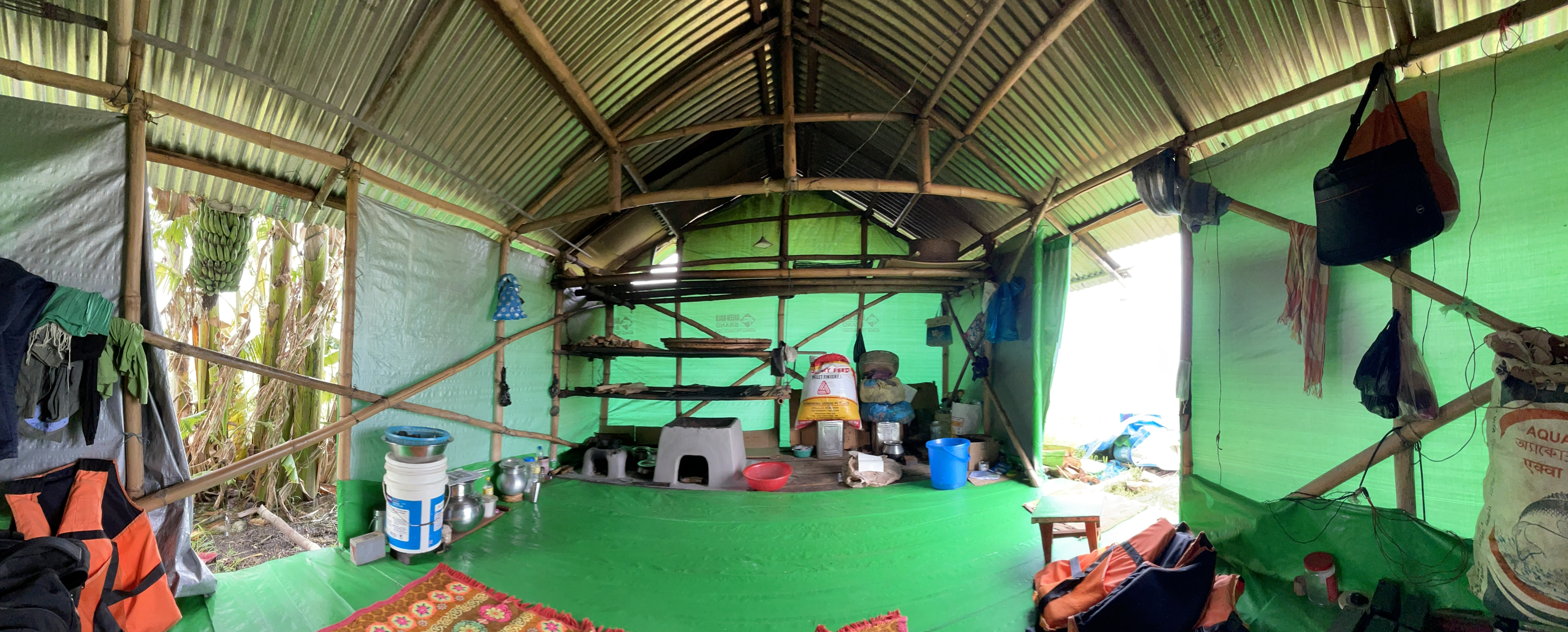 The homes were careful assemblies of bamboo, thatch and/or GI sheets which demarcated a space of living. The periphery was crafted by these objects that found place in niches and platforms while the center was a void frequented by people for sleeping, having meals or even simply sitting. The house was filled with the smell of fresh fish after a good catch and meant a sumptuous meal for the day. The stark contrast amidst porosity and impermeability was evident with all storage materials resisting wetness while the wooden floor still felt like a scented moist surface.Gazing at the moving masses through the door was probably the kind of leisure they pursued, unlike the city dwellers who built elaborate infrastructure for recreation. The home extended beyond the enclosure and thereby included the lake and fishing masses which formed the ecosystem.